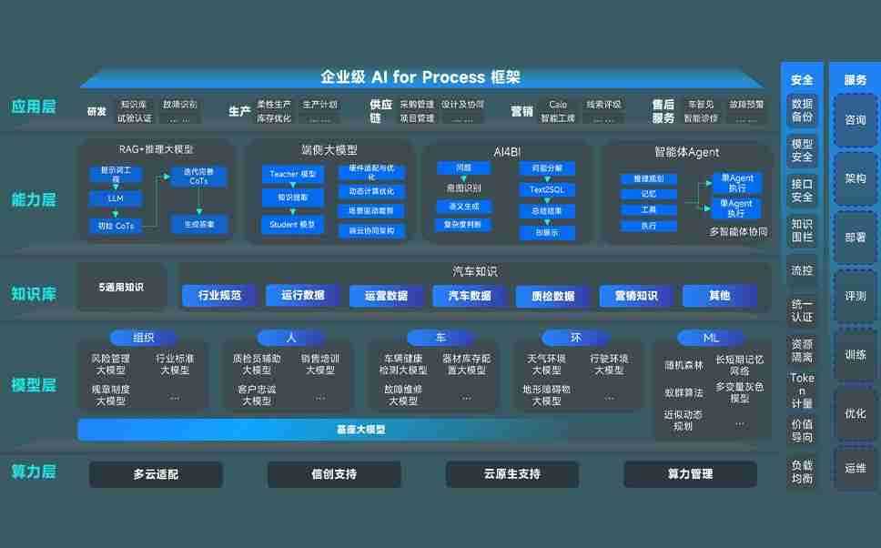 Z6尊龙时凯问学智车解决方案是一套基于AI技术的汽车行业智能化系统,,,,覆盖从底层算力到顶层AI应用的全栈方案。。方案由算力层、、、、模型层和应用层组成:算力层,,,方案支持多种一体机配置,,,具备云端灵活部署、、多云适配以及动态优化计算资源的能力;模型层,,,,Z6尊龙时凯问学平台版提供了企业级AI应用一站式构建与管理平台,,支持基于后训练强化技术的汽车企业专属模型的训练、、、、评测和运营;应用层,,,,Z6尊龙时凯问学DeepSeek版提供包括超级员工、、、智能招采、、、智能营销、、、、智能客服、、、、AI for BI等一系列解决方案,,可助力汽车行业实现数字化转型,,让管理更智能、、响应更敏捷。。。